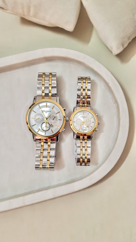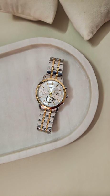 ست ساعت مچی رومانسون سه موتوره دورنگ طلایی نقرهای
