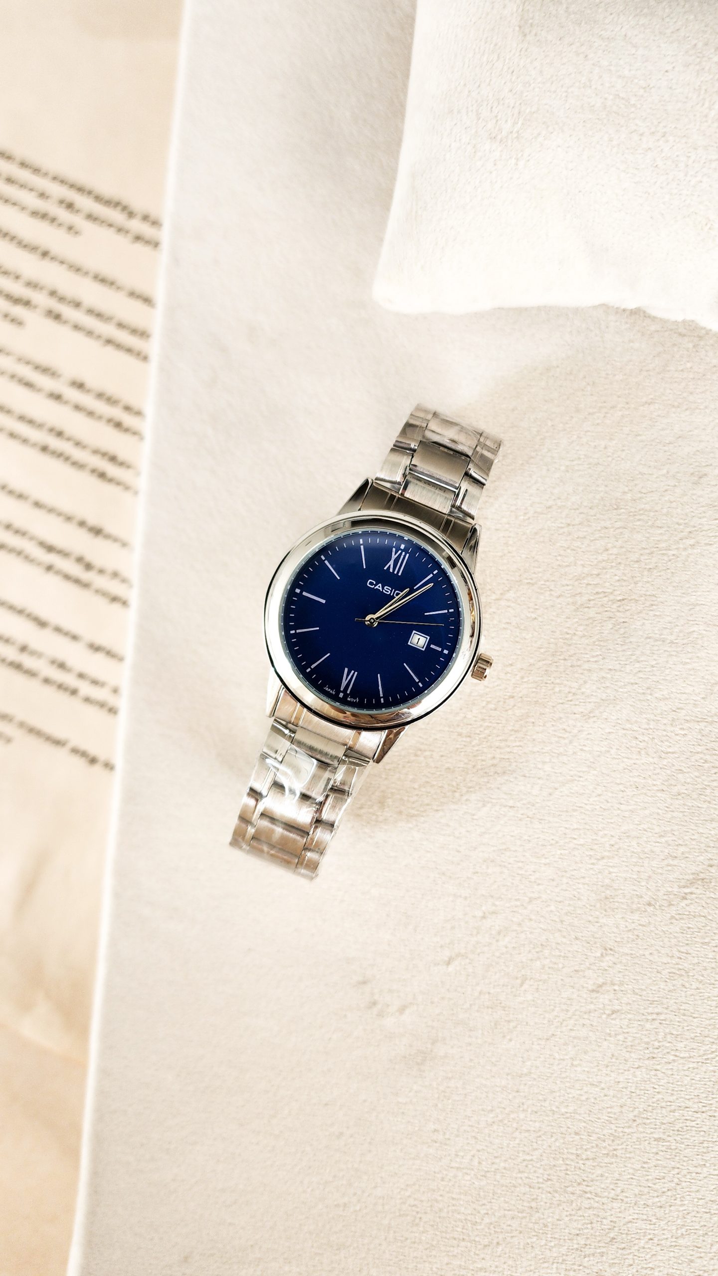 ساعت کاسیو عدد یونانی سورمه ای رنگ ثابت