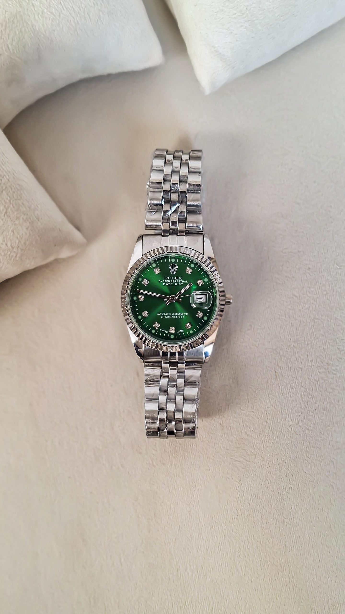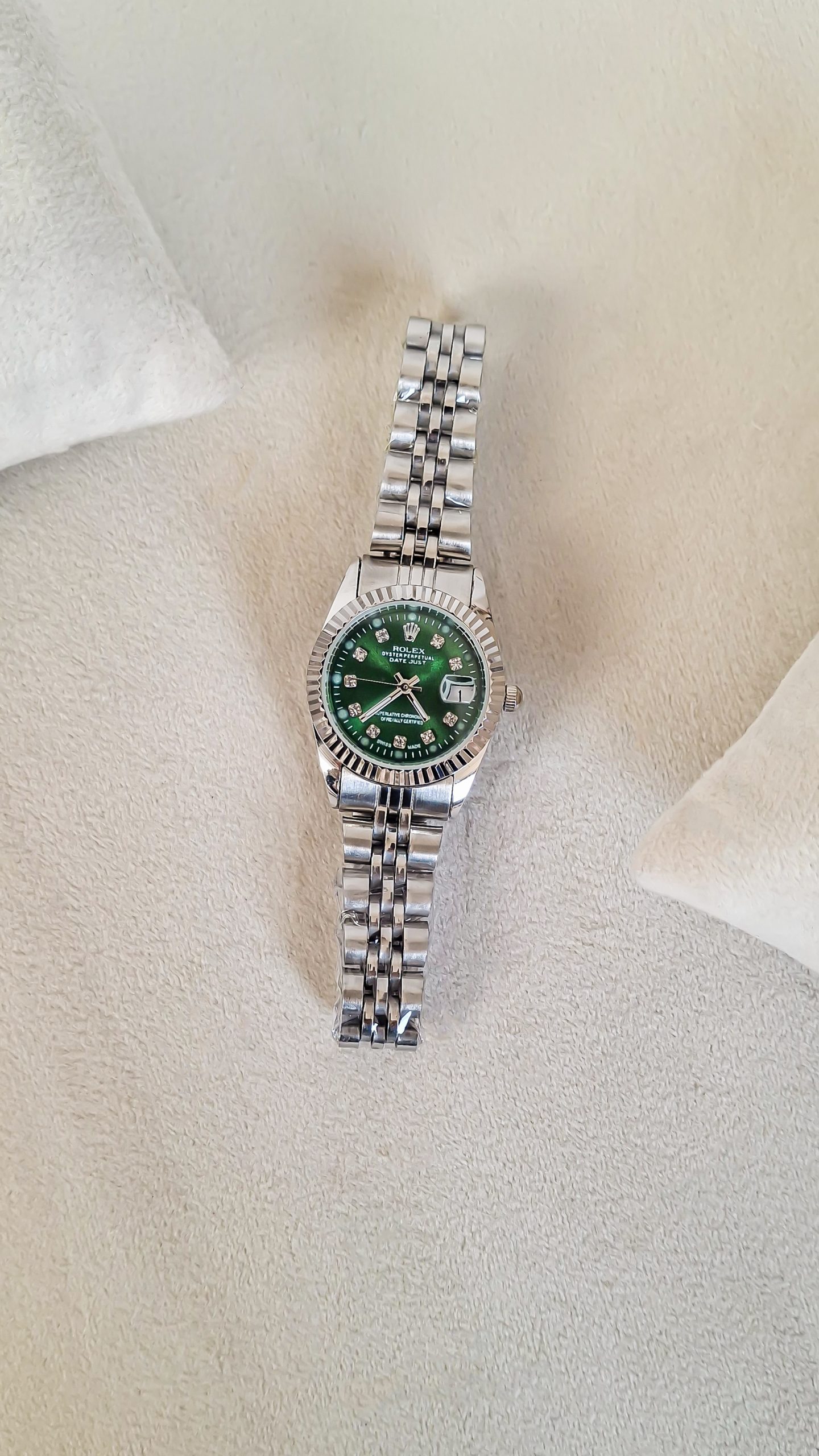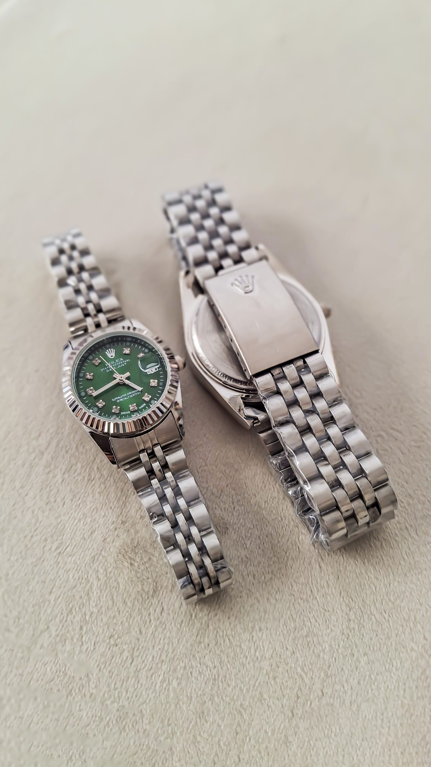 ست ساعت مچی زنانه و مردانه طرح رولکس (Rolex) مدل Datejust صفحه سبز بند و بدنه استیل